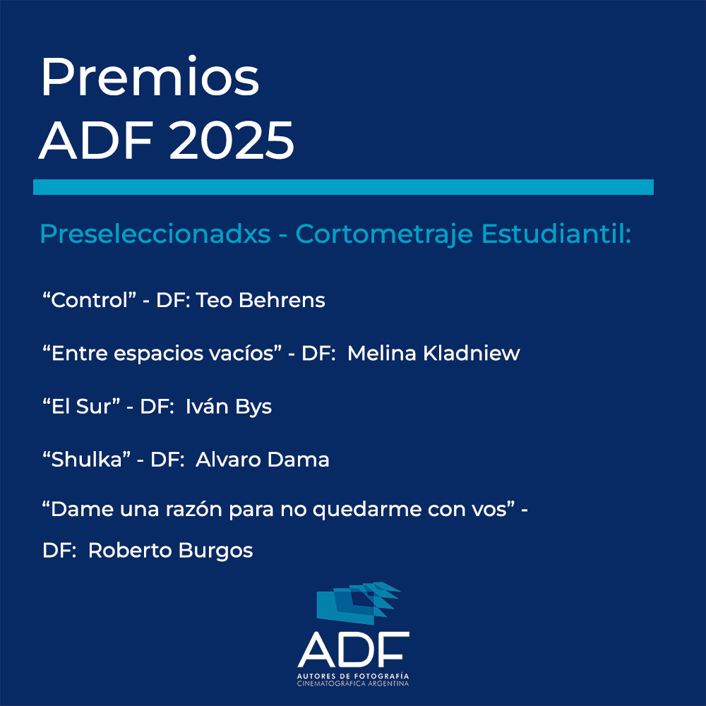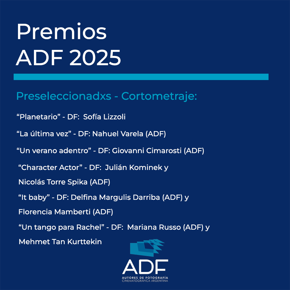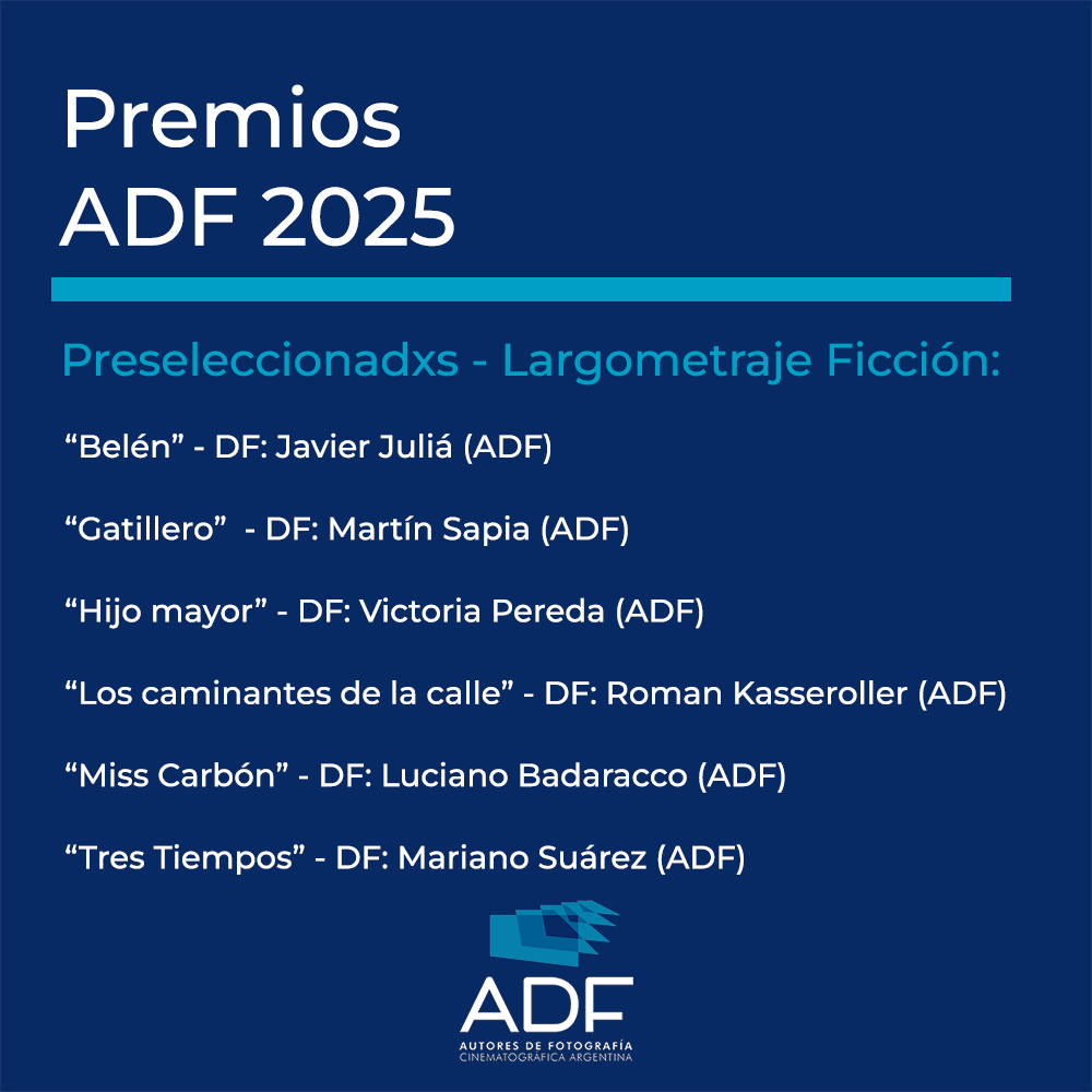 Estamos contentxs de poder anunciar a lxs preseleccionadxs de los Premios ADF 2025 en las diferentes categorías. Agradecemos especialmente a todxs lxs postuladxs por el gran nivel de sus trabajos y por su interés. En esta estapa todxs lxs socixs de la ADF se encuentran votando de manera anónima e individual a lxs ganadorxs. Próximamente vamos a compartir la fecha y lugar de la ceremonia de premiación. Felicitaciones a todxs lxs preseleccionadxs, nos vemos pronto! ADF.