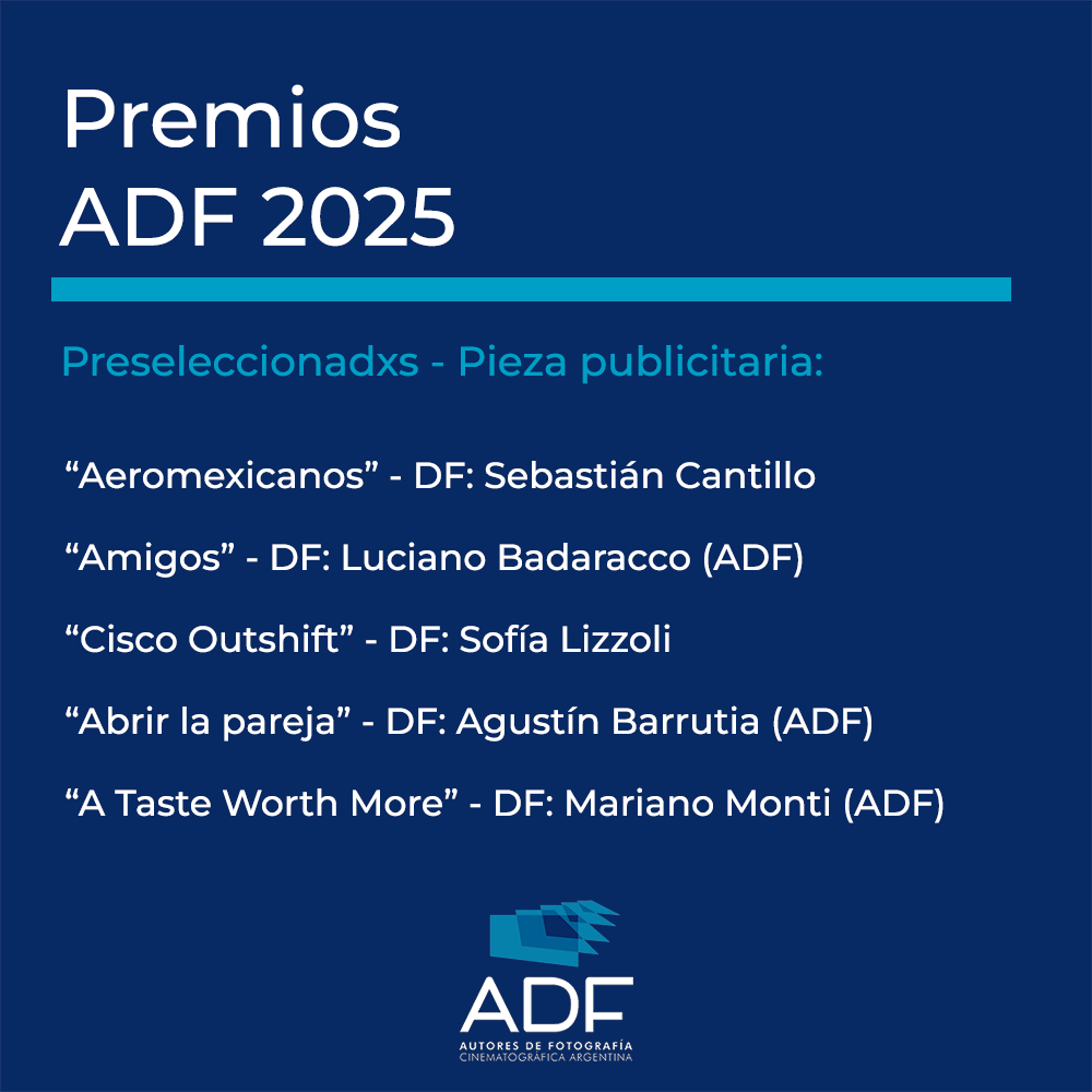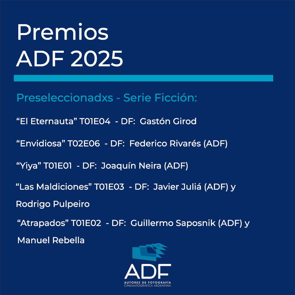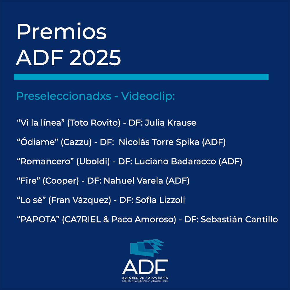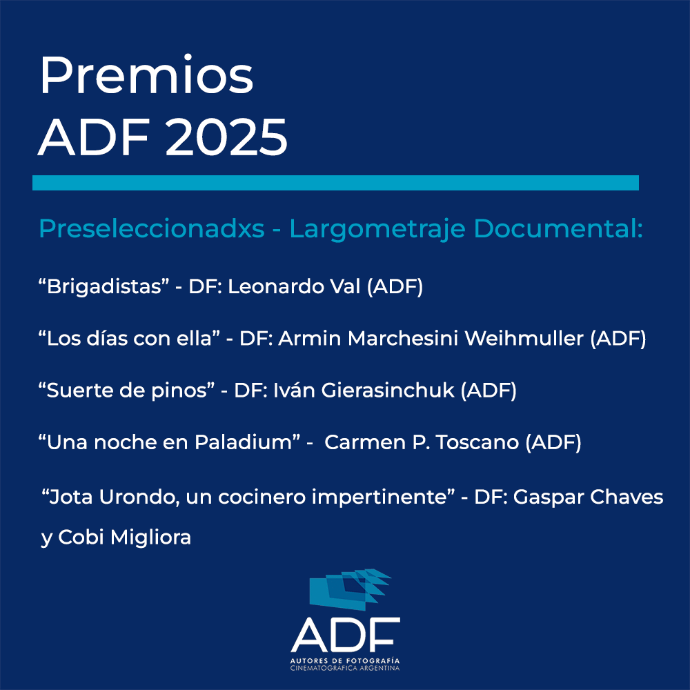 Estamos contentxs de poder anunciar a lxs preseleccionadxs de los Premios ADF 2025 en las diferentes categorías. Agradecemos especialmente a todxs lxs postuladxs por el gran nivel de sus trabajos y por su interés. En esta estapa todxs lxs socixs de la ADF se encuentran votando de manera anónima e individual a lxs ganadorxs. Próximamente vamos a compartir la fecha y lugar de la ceremonia de premiación. Felicitaciones a todxs lxs preseleccionadxs, nos vemos pronto! ADF.