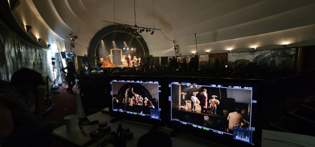 En un scouting en el mercado central apareció un auditorio, realmente un lugar interesante visualmente, se pensó un instante y se pasaron las escenas de teatralización a ese decorado.