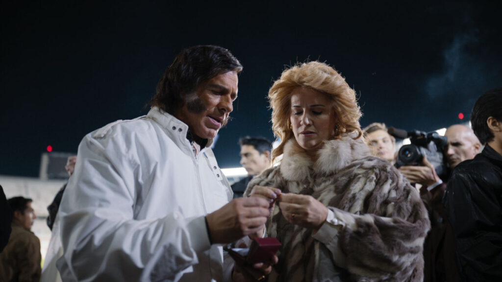 – Cierre de primer capítulo y como coronario, tiene lugar el discurso en el estadio Monumental rodeado de su gente de confianza, incluido Olegario, y una gran multitud. Es un momento muy importante no sólo en términos de grandilocuencia sino en el arco dramático de los personajes. ¿Cuál fué la búsqueda y el planteo de esta escena?