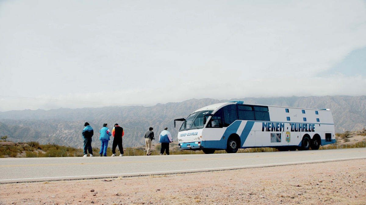 Luego viajó a La Rioja, donde el rodaje fue justamente sobre el Menemóvil en movimiento, la parte de adelante era el set y la parte de atrás donde estaba el monitoreo, foquistas, asistentes etc etc.
