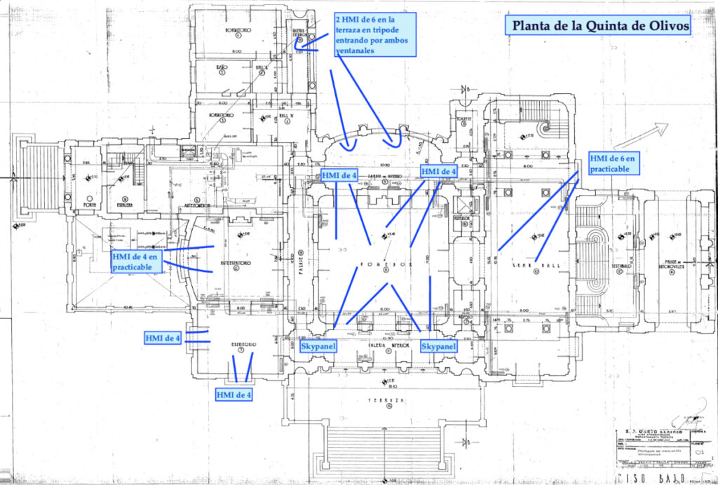 Es una locación realmente enorme y sus ambientes claramente muy amplios, para iluminarla usamos principalmente los ventanales y las majestuosas arañas del lugar con lámparas comunes, apliques de pared y lámparas de pie y escritorio, a estas últimas cuando no teníamos la posibilidad de cablearlas para no cruzar con cables les pusimos Bulbs, sino por practicidad preferimos tener todo cableado y con lámparas comunes, al decir comunes claramente son led.