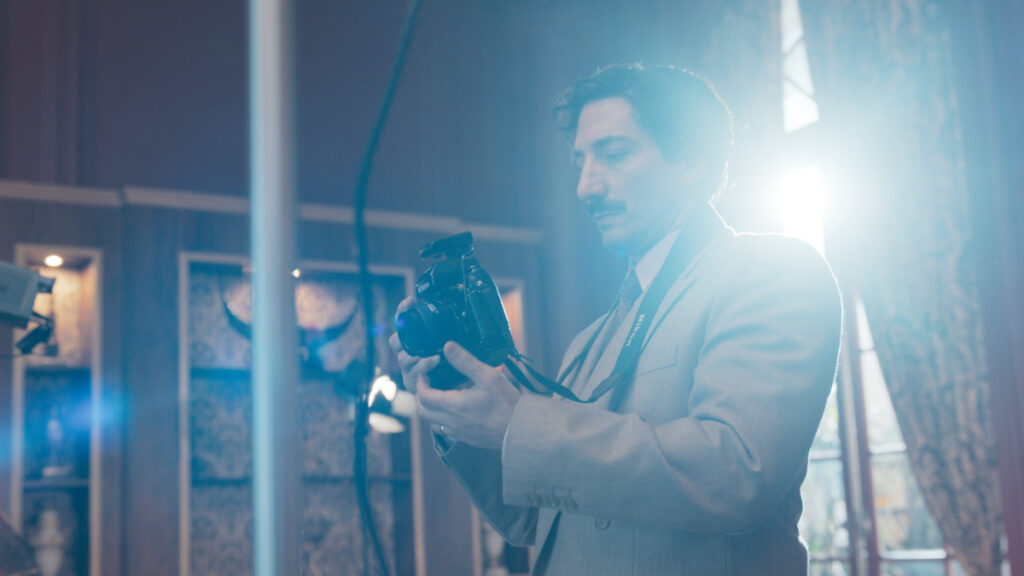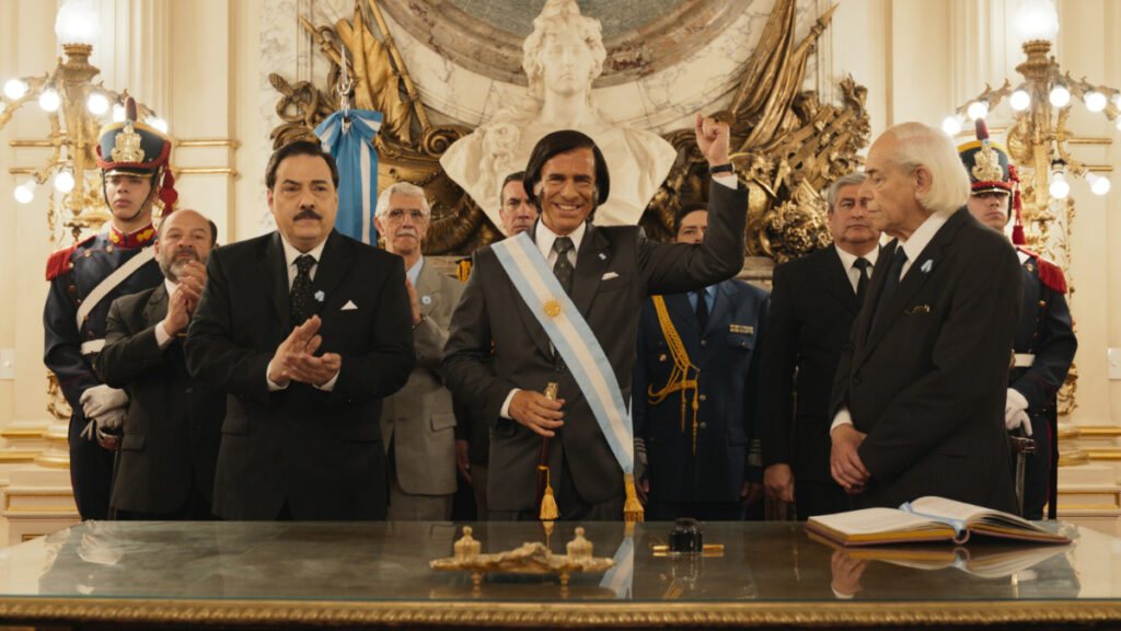 -El primer capítulo no solo nos presenta el personaje de Menem sino también a Olegario (Juan Minujín), su fotógrafo personal, quien va a ser el que guíe al espectador en esta road movie que es la campaña presidencial.