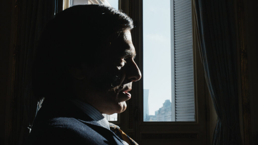 En toda esta locación nos valimos de los ventanales como principales entradas de luz, aunque fuese de noche. Como en la escena del capítulo 6 en la que Menem rompe su estudio , en la cual entramos con HMI por las ventanas y casi sin luz en el interior, usando solo los contraluces fríos, logrando imágenes con mucha potencia visual.