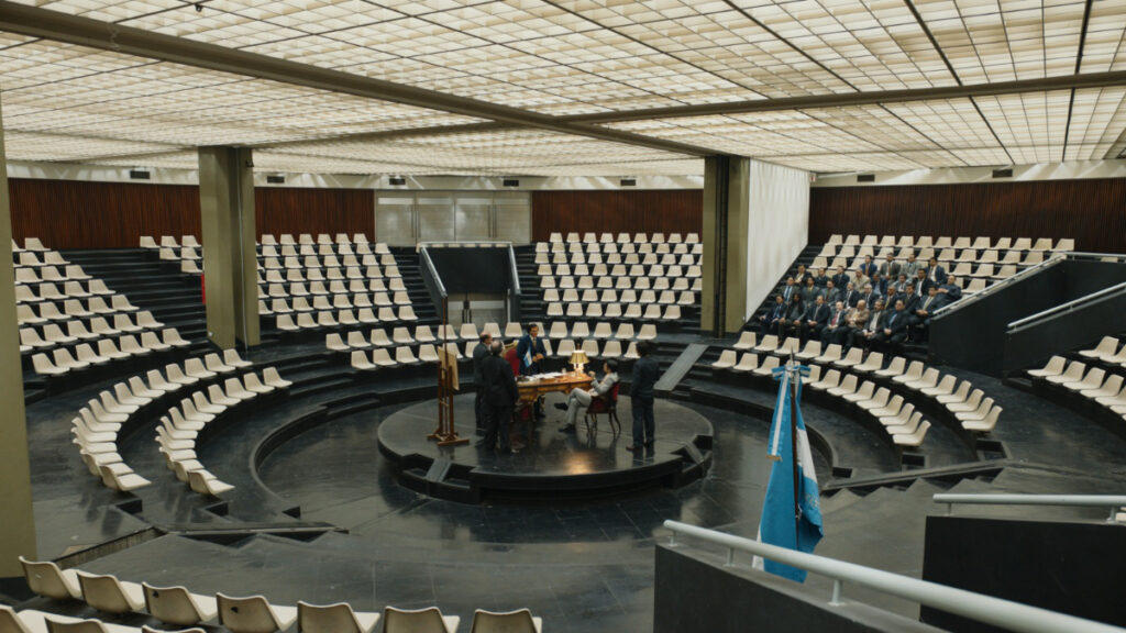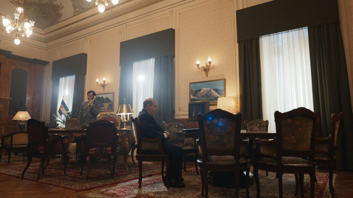 Bueno como ya mencionamos, hay varias locaciones muy reconocibles y en una época también particular. Desde la búsqueda de locaciones se priorizo esta unidad estética, hay decorados como el despacho presidencial de la Casa Rosada que no es el real, se filmó en el Centro Naval que además de ambientarlo hubo que realizar el hogar tan característico del mismo.