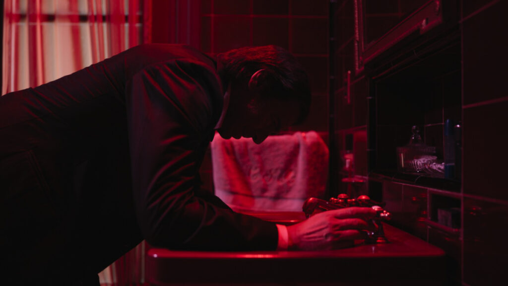 La imagen acompaña el relato, empieza con una road movie con color, brillo y luz y va acompañando los distintos estadios hasta llegar a ese baño rojo, sombrío.